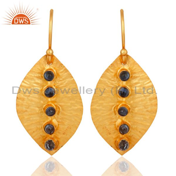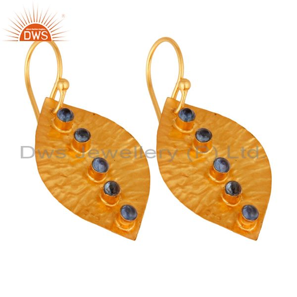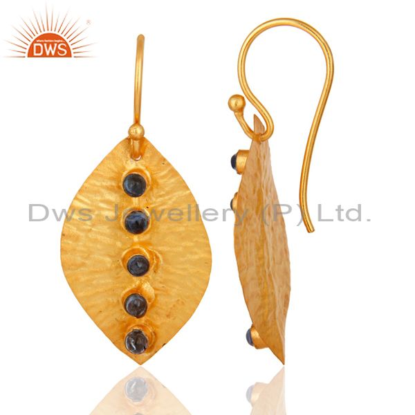 Blue Sapphire Dangle 14K Yellow Gold Plated 925 Sterling Silver Earrings Jewelry