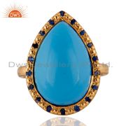 Blue Sapphire Gemstone 18K Gold Plated Turquoise Sterling Silver Earring