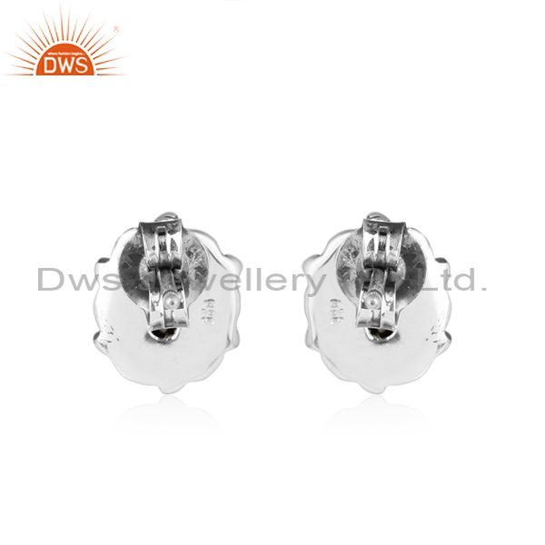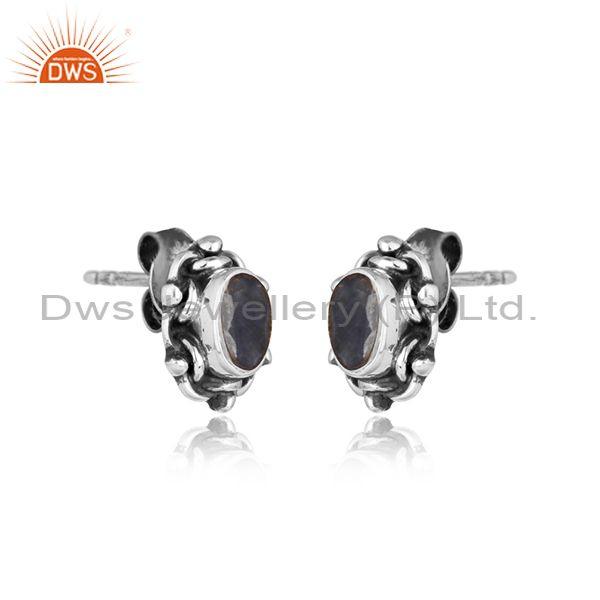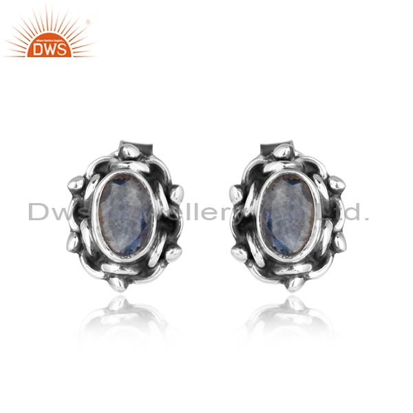 Blue Sapphire Gemstone Oxidized Silver Womens Stud Earrings Jewelry