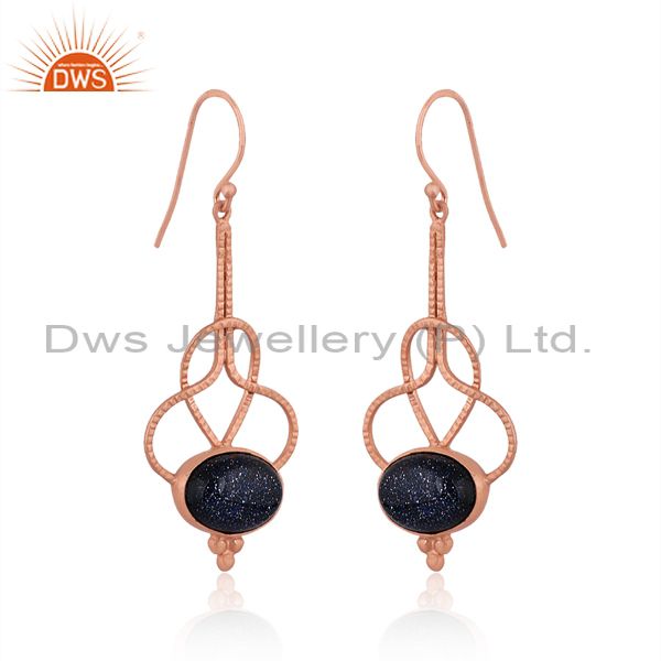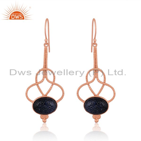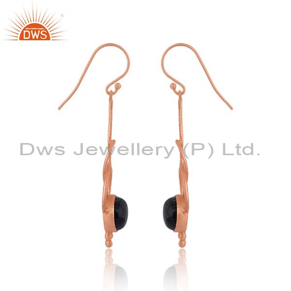 Blue Sun Stone Rose Gold On Silver Designer Long Earrings