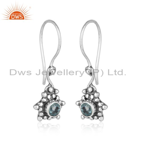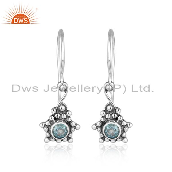 Blue Topaz Gemstone New Sterling Silver Oxidized Designer Earring