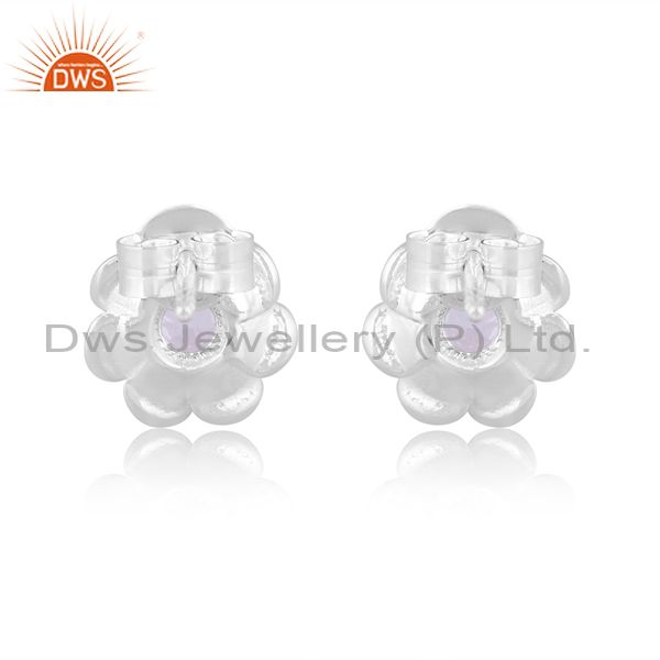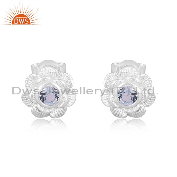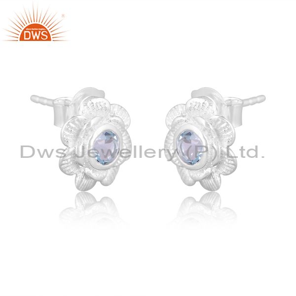 Blue Topaz Set Fine Sterling Silver Classic Floral Earrings