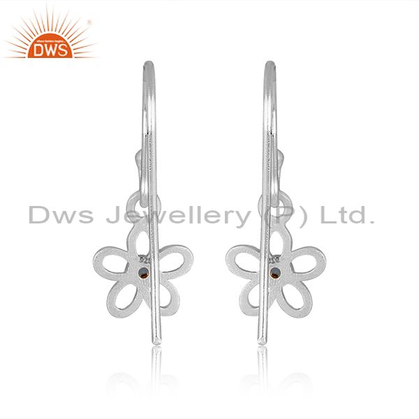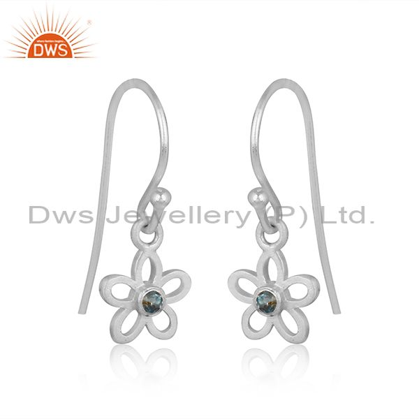 Blue Topaz Set Fine Sterling Silver Floral Earwire Earrings