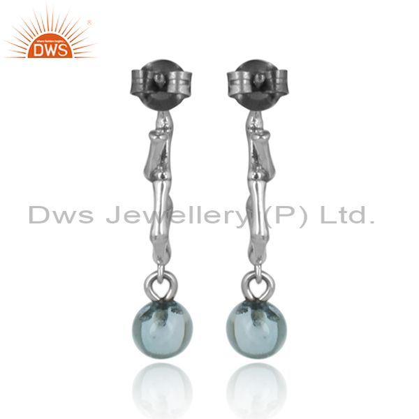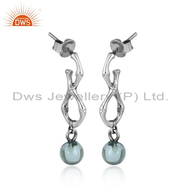 Blue Topaz Set Handmade Oxidized Silver Long Drop Earrings