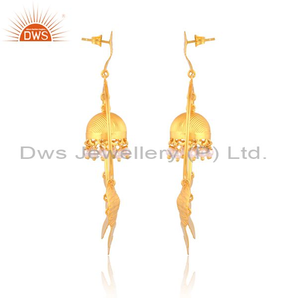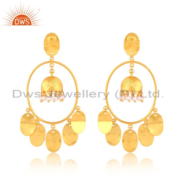 Brass 18K Gold Plated Pearl Bead Round Premium Earring