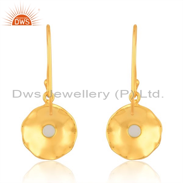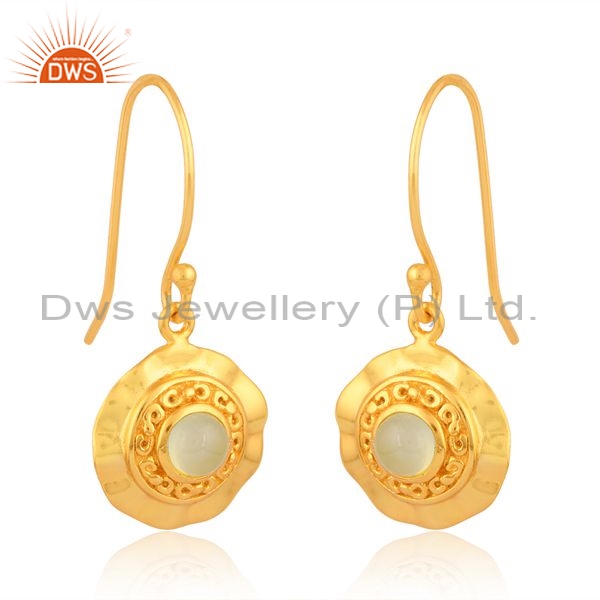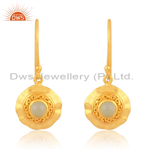 Brass Gold 18 K Drop Earrings With Prehnite Chalcedony