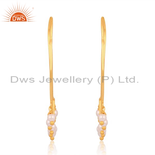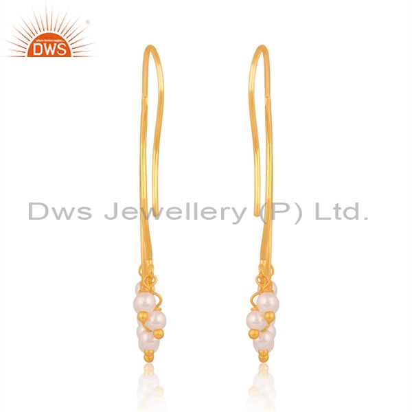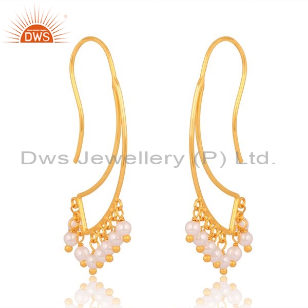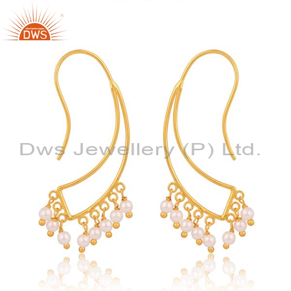 Brass Gold 18K Earrings With Pearl Beads Round Cut