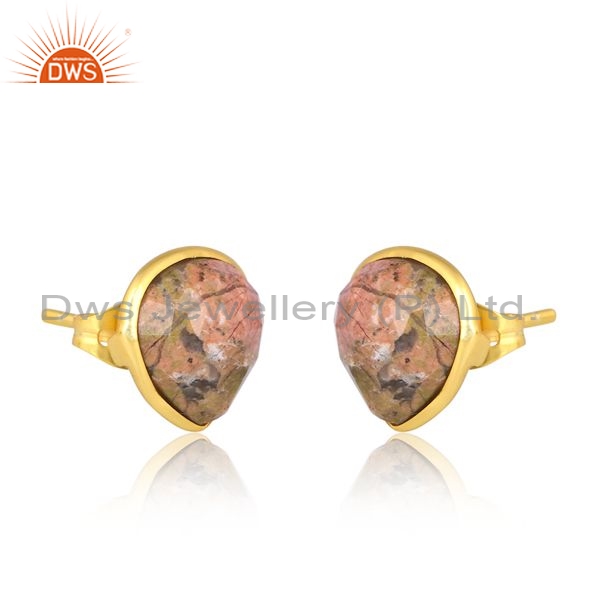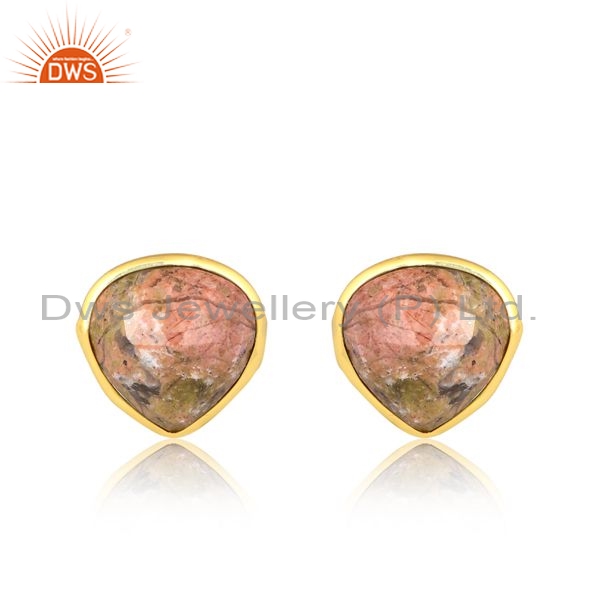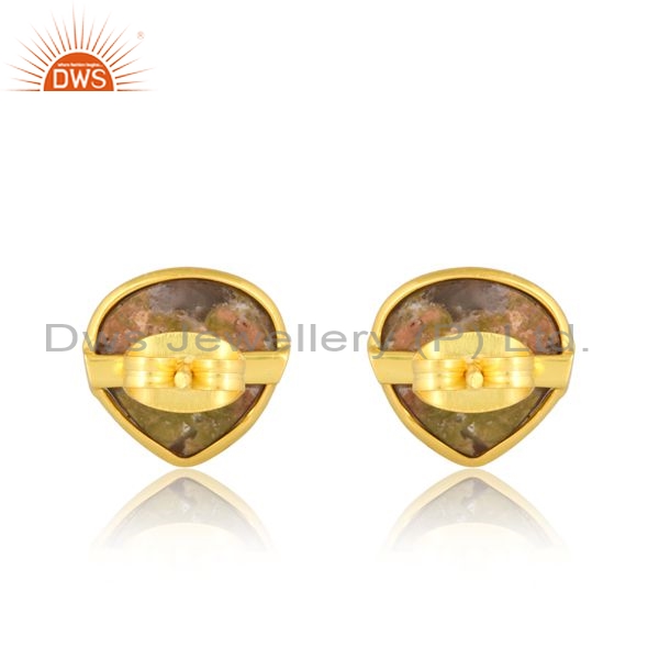 Brass Gold 18K Start With Heart Checker Unakite Stone