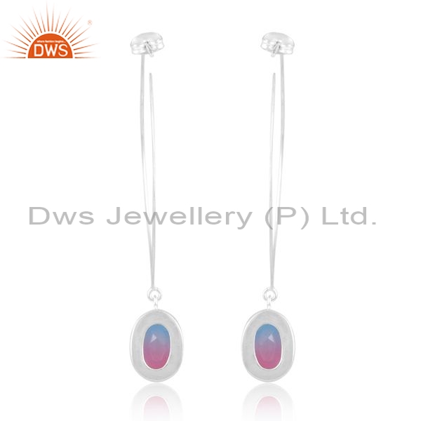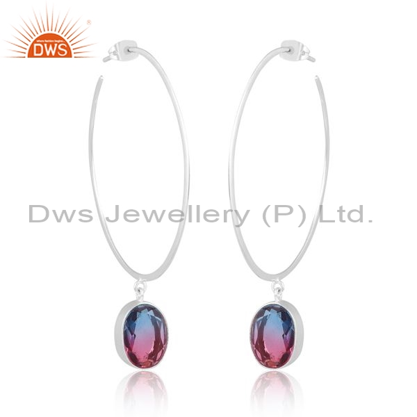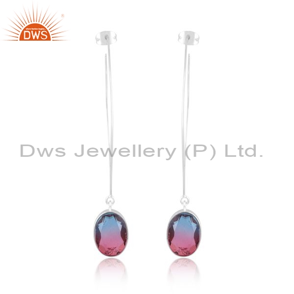 Brass White Earrings With Bio Alexandrite Doublet Oval Cut