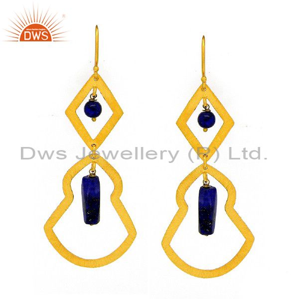 Brushed 22K Yellow Gold Plated Sterling Silver Lapis Lazuli Dangle Earrings