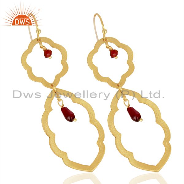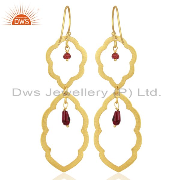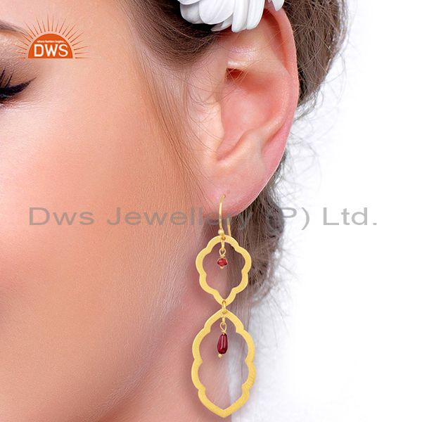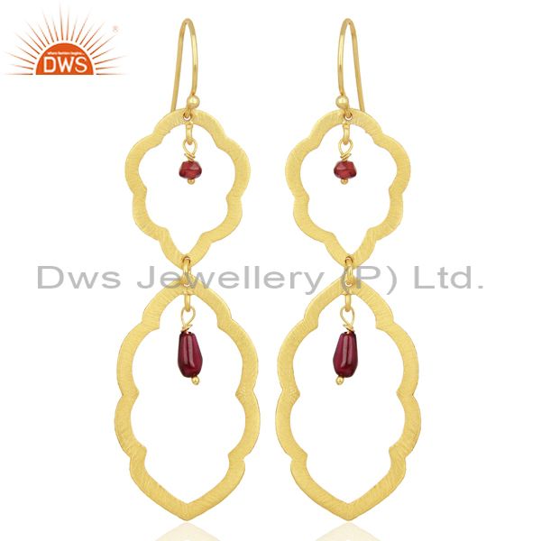 Brushed 22K Yellow Plated Sterling Silver Garnet Gemstone Dangle Earrings