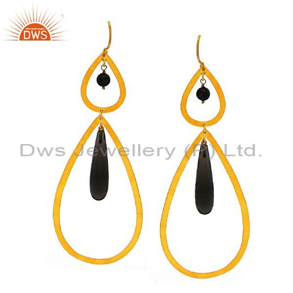Brushed Finish 22K Gold Plated Sterling Silver Smoky Quartz Teardrop Earrings