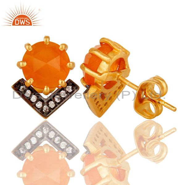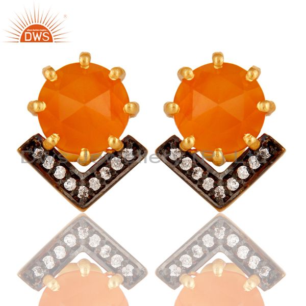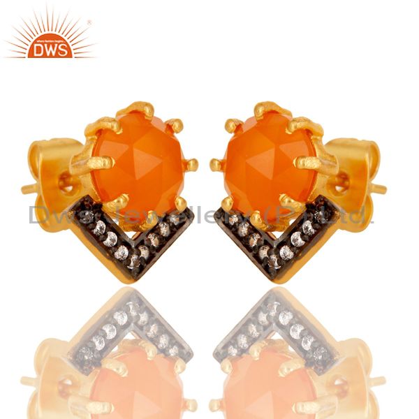 Carnelian and White Zircon New Look Fashion Design Brass Stud Earrings