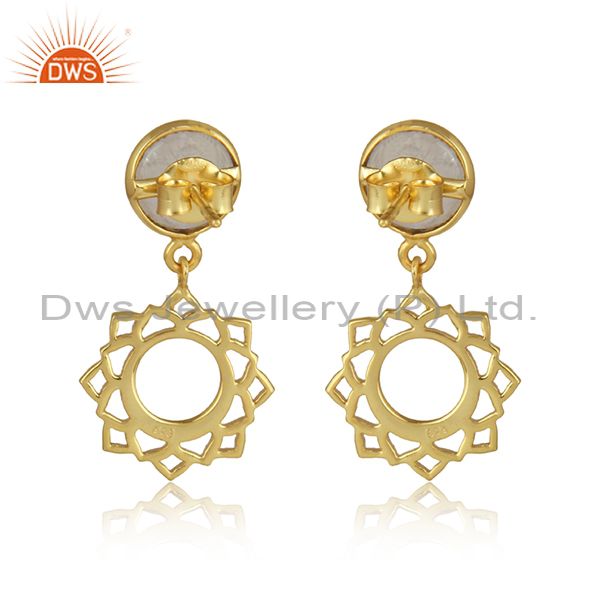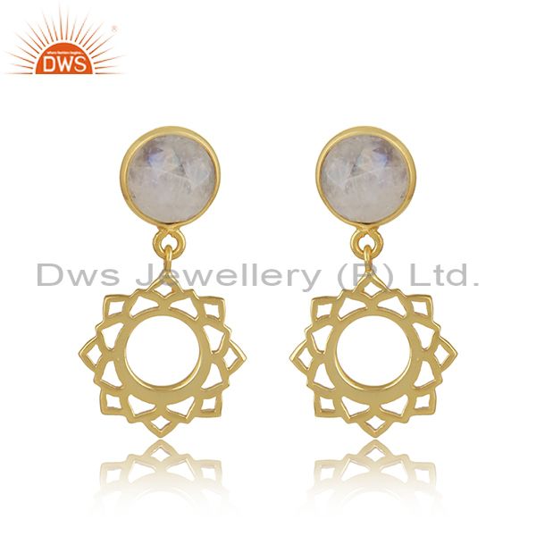 Chakra Earring in Yellow Gold on Silver with Rainbow Moonstone