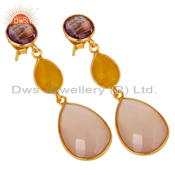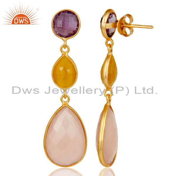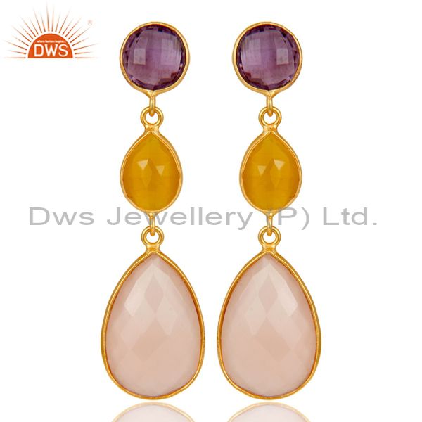 Chalcedony, Amethyst & Moonstone 18K Gold Plated Sterling Silver Dangle Earrings