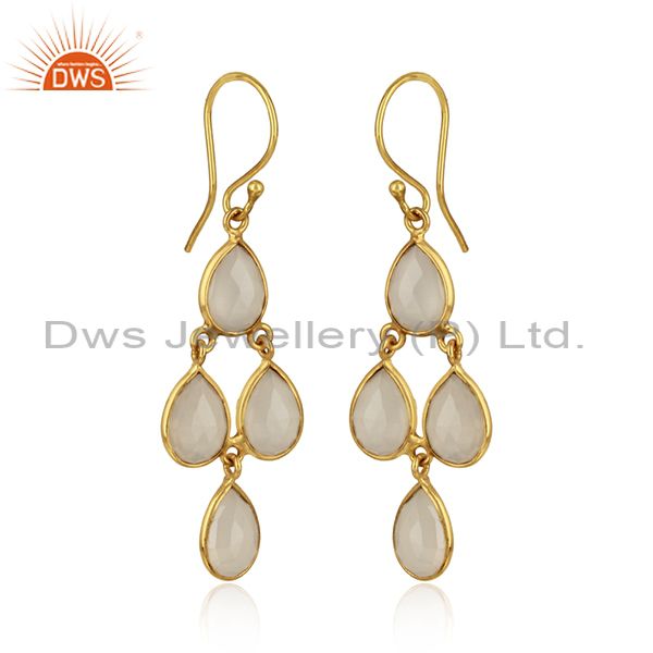 Chandelier Earring In Yellow Gold On Silver And White Chalcedony