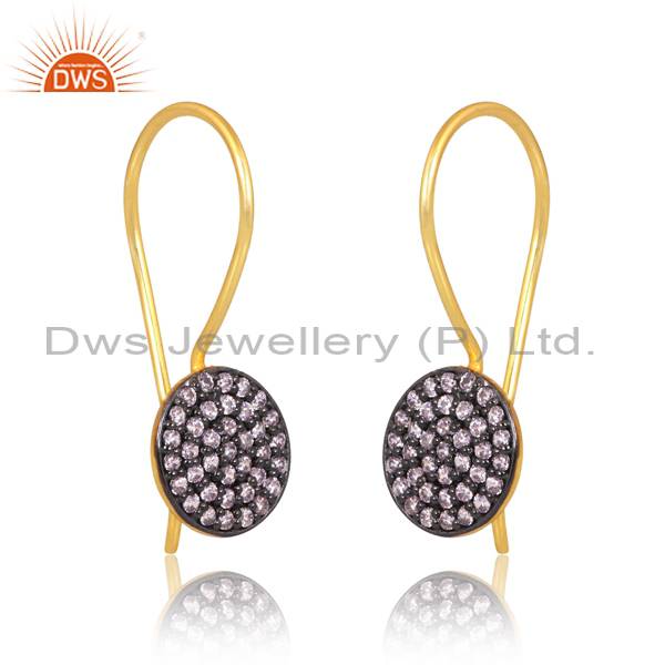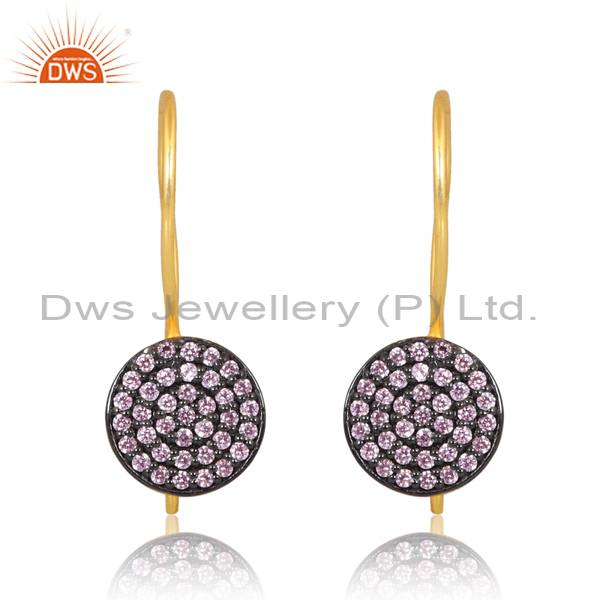 Chic Gold And Black Sterling Silver Earrings Pink Zircon