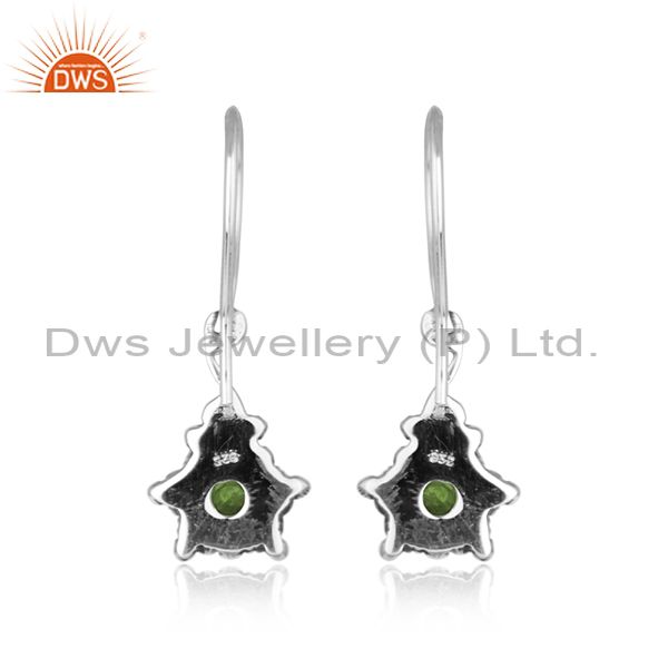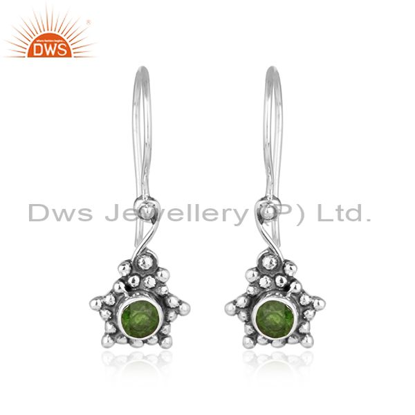 Chrome Diopside Gemstone Designer Oxidized Silver Womens Earrings