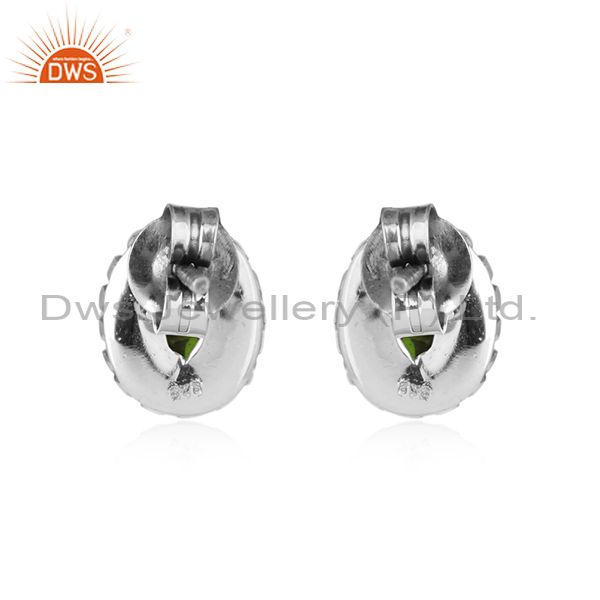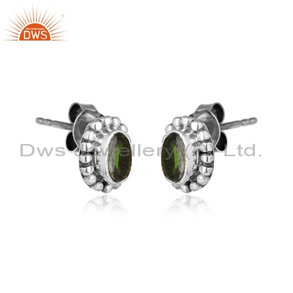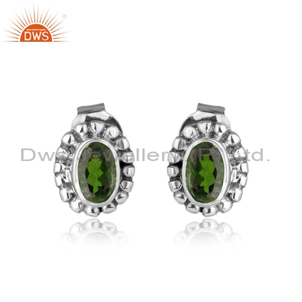 Chrome Diopside Gemstone Handmade 925 Silver Oxidized Stud Earrings