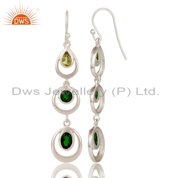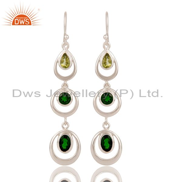 Chrome Diopsite and Peridot Sterling Silver Gemstone Dangle Earring