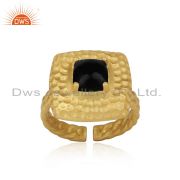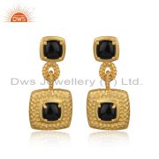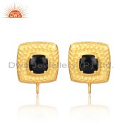 Chunky Hammered Gold on Silver 925 Studs with Black Onyx