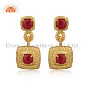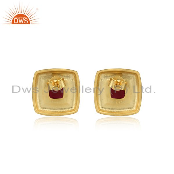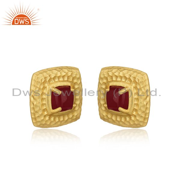 Chunky Hammered Gold on Silver 925 Studs with Dyed Ruby