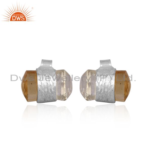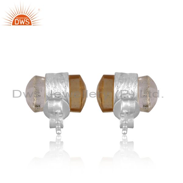 Citrine And Crystal Quartz Set Fine Sterling Silver Earrings