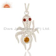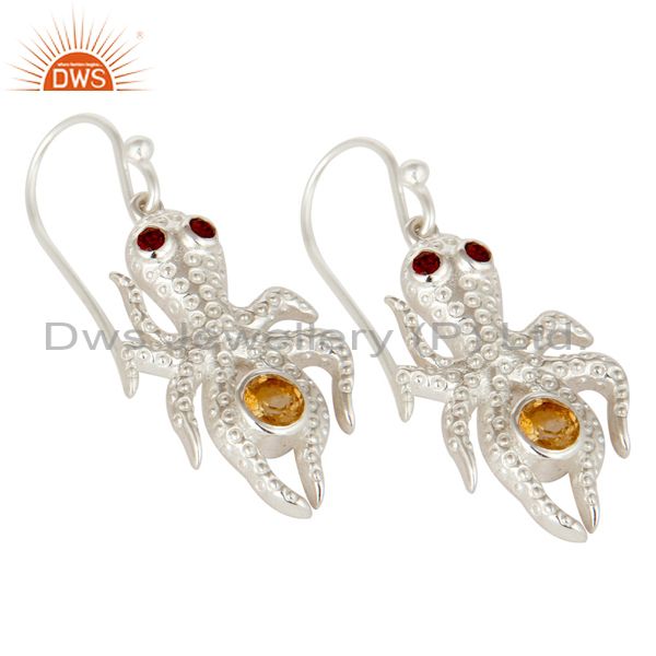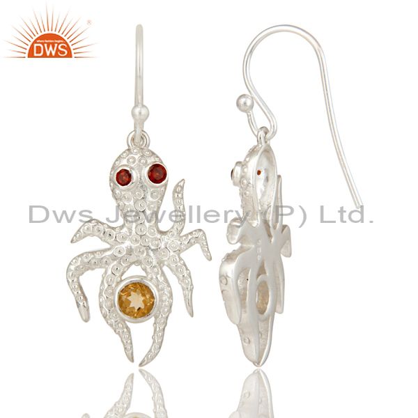 Citrine and Garnet Gemstone Sterling Silver Octopus Dangle Earrings