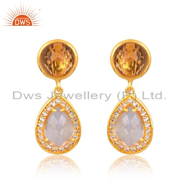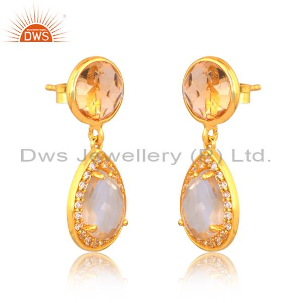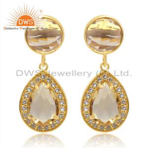 Citrine Briolette & White Topaz Earrings: Stunning Sparkle