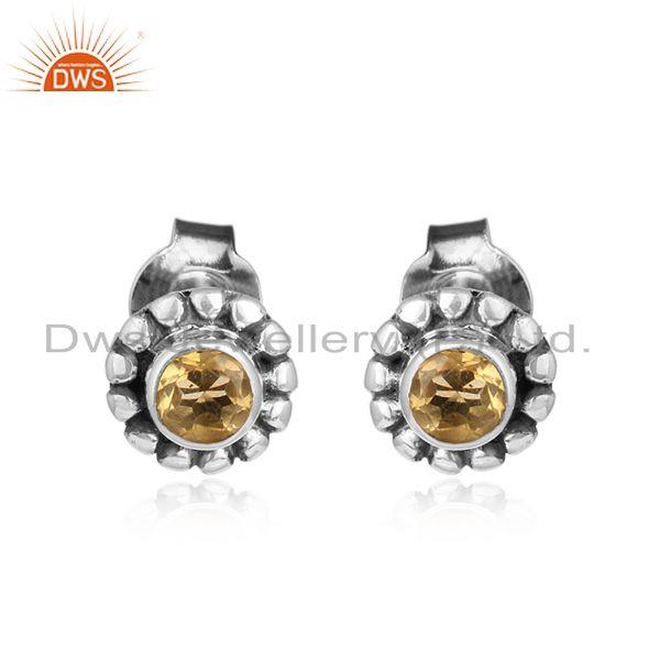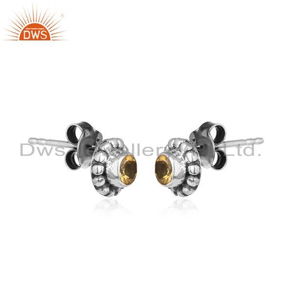 Citrine Gemstone Designer Antique Oxidized Silver Stud Earrings