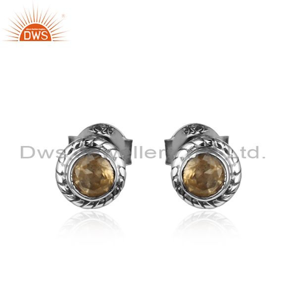 Citrine Gemstone Oxidized 925 Silver Designer Tiny Stud Earrings