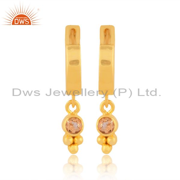 Citrine Set Gold On 925 Silver Handmade Traditional Earrings