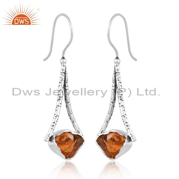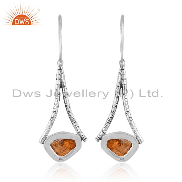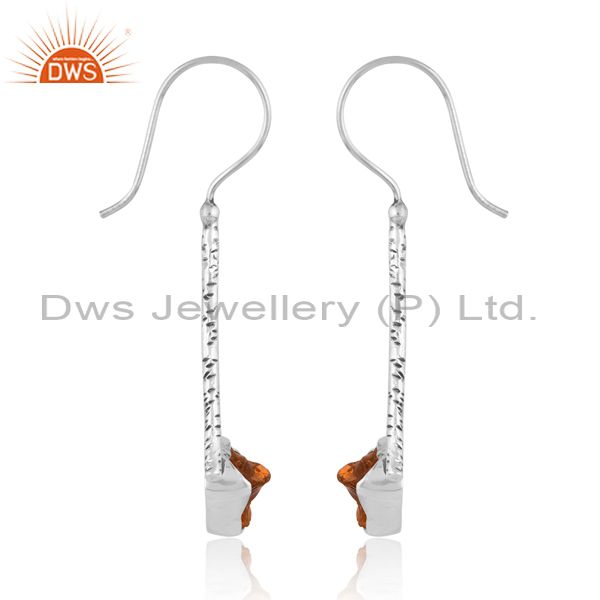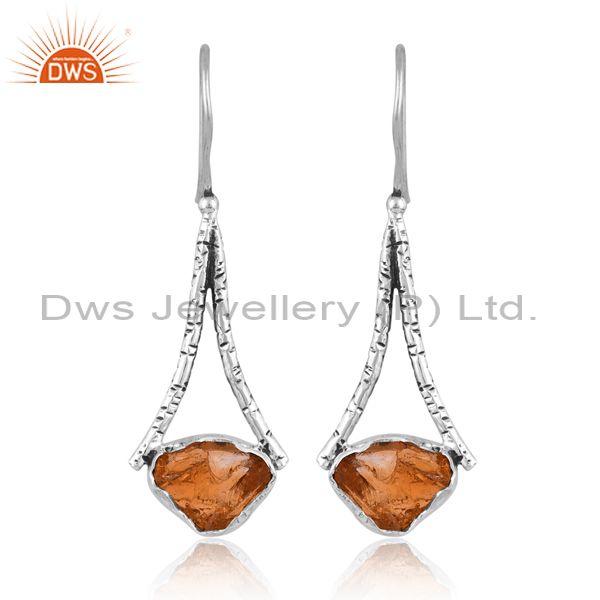 Citrine Set Oxidized Sterling Silver Long Statement Earrings