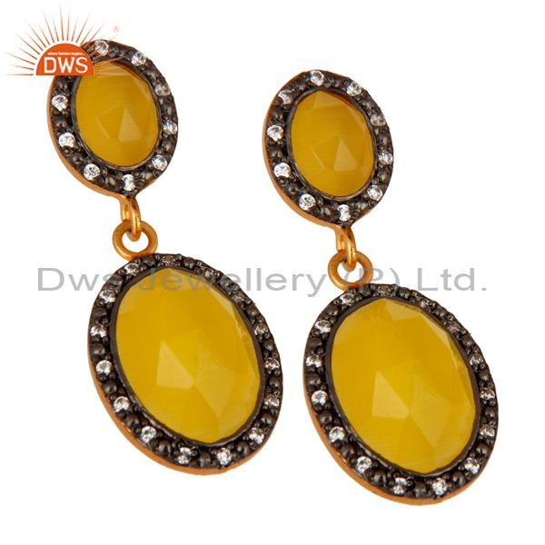 Classic Design Yellow Moonstone Gold Plated Sterling Silver Fashionable Earring
