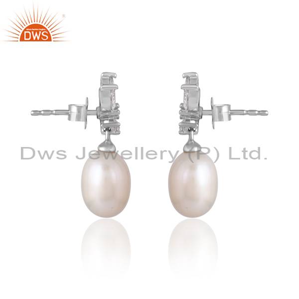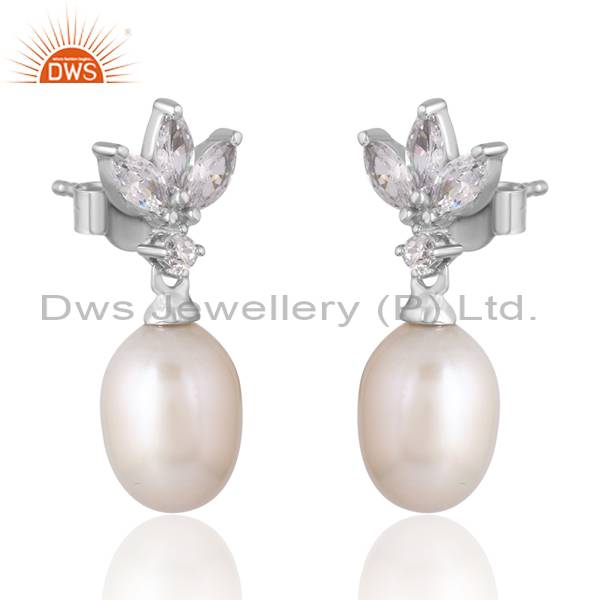 Classic Sterling Silver Pearl & Cubic Zirconia Drop Earrings