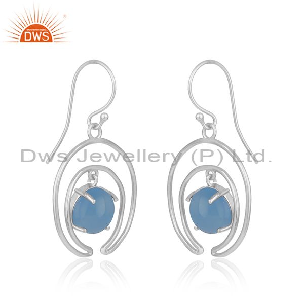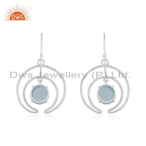 Crescent Moon Design Fine Sterling Silver Blue Chalcedony Earrings