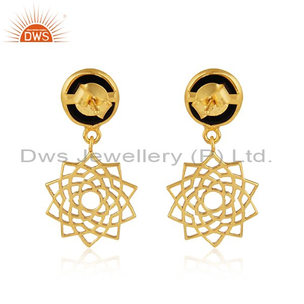 Crown Chakra Earring in Yellow Gold On Silver With Black Onyx