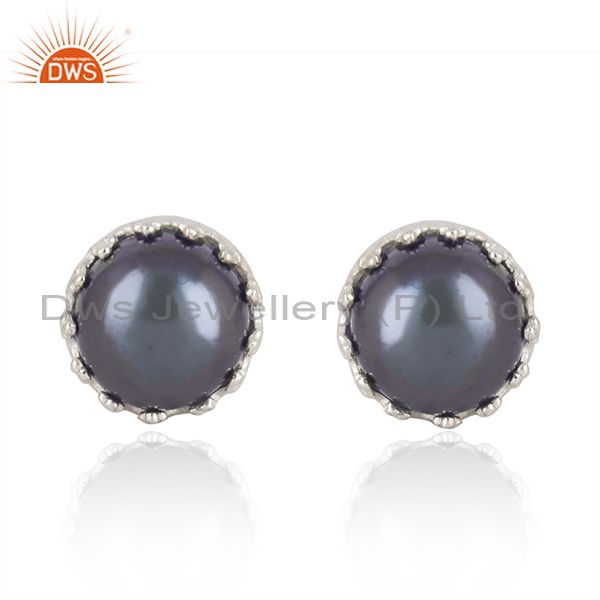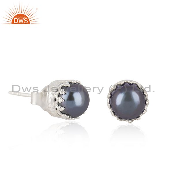 Crown Design Fine 925 Silver Gray Pearl Stud Earring Manufacturer