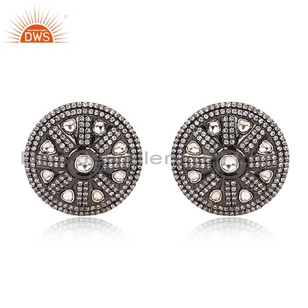 Crystal And White Zircon Victorian Style Silver Round Stud Earring Manufacturer