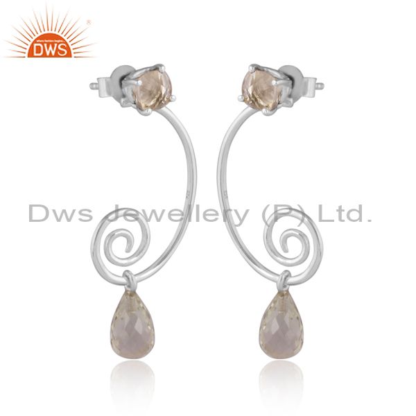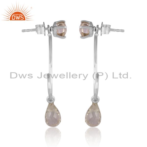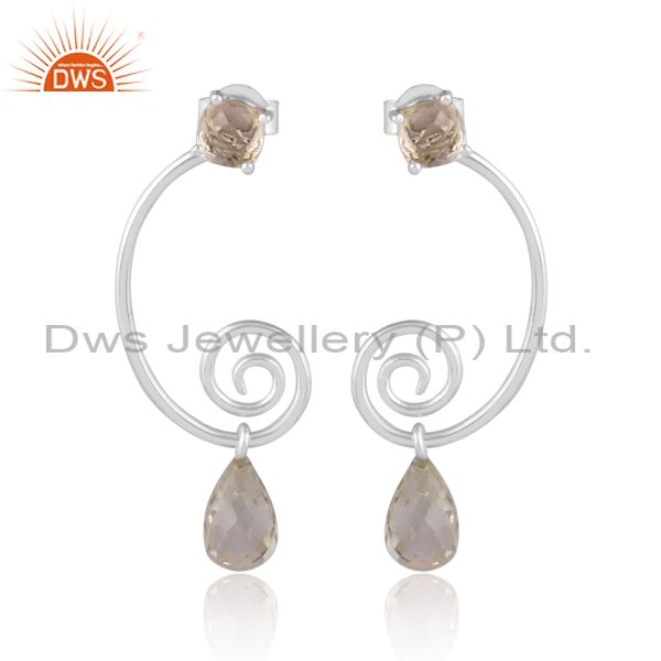 Crystal Quartz And Green Amethyst Set Fine Silver Earrings