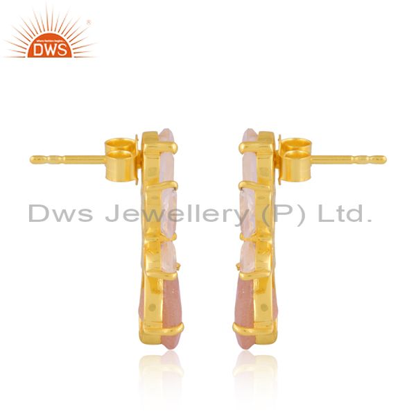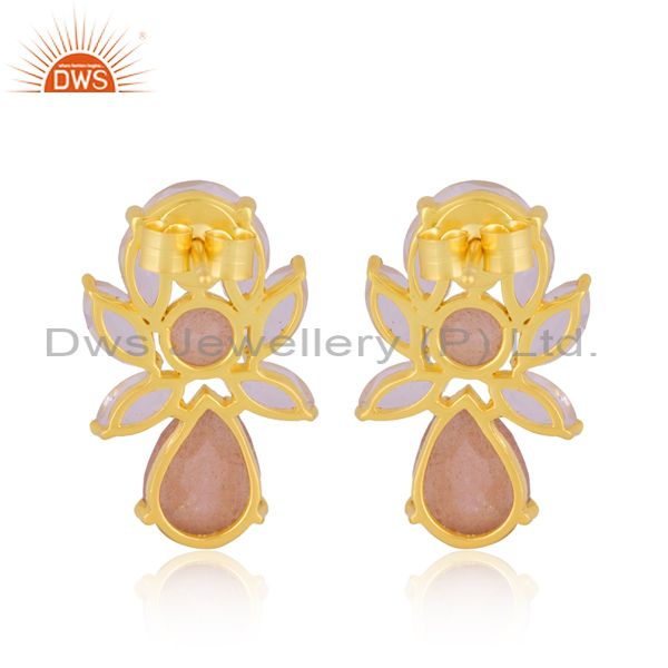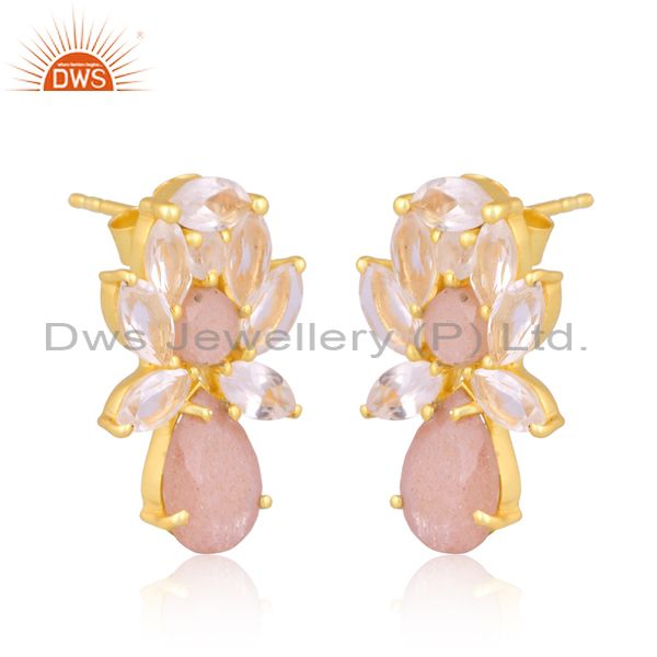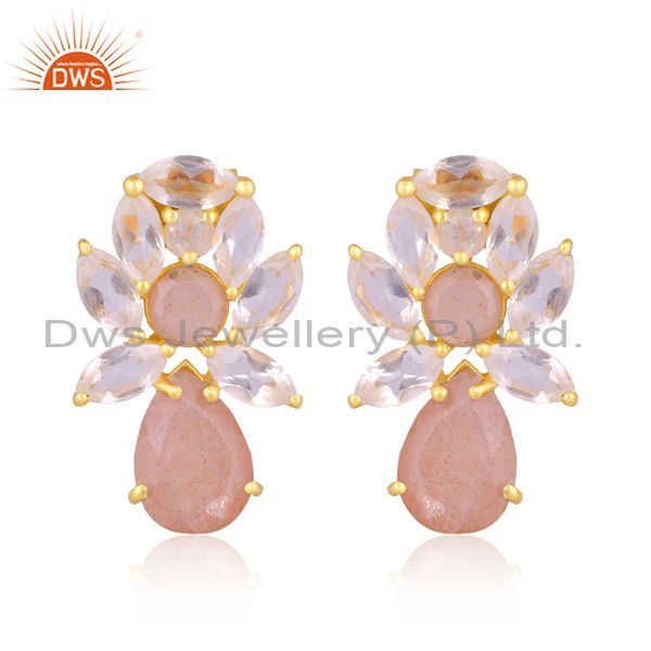 Crystal Quartz And Peach Moonstone Gold On Silver Earrings