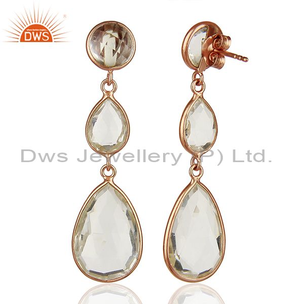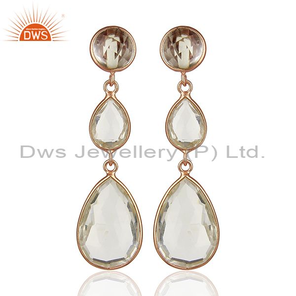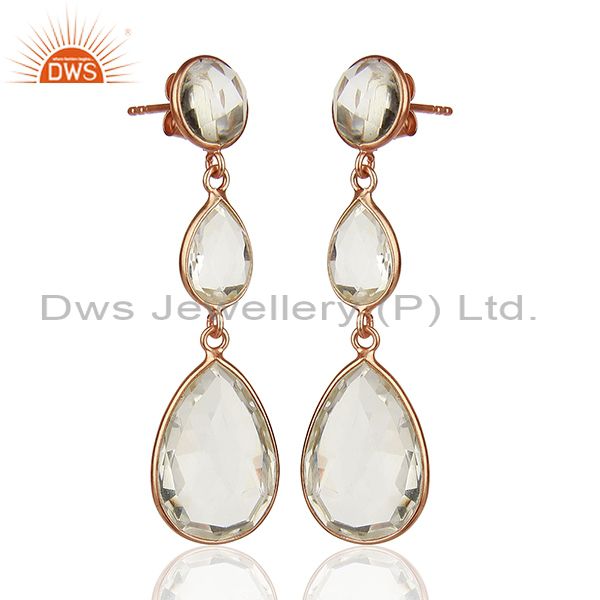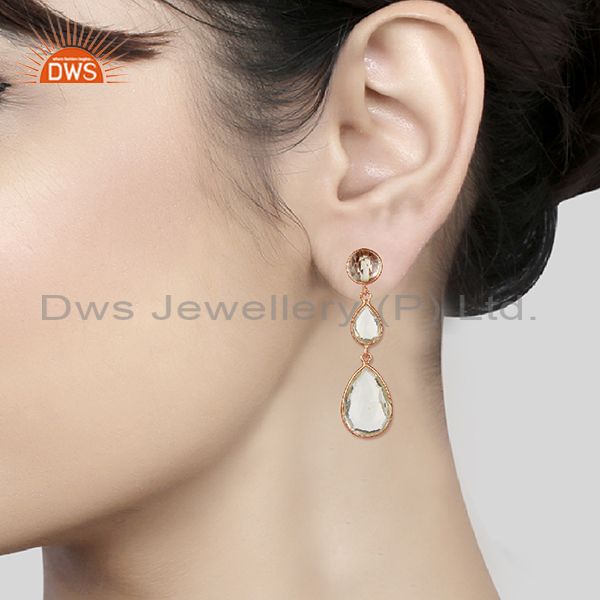 Crystal Quartz Gemstone 925 Silver Women Dangle Earrings Jewelry