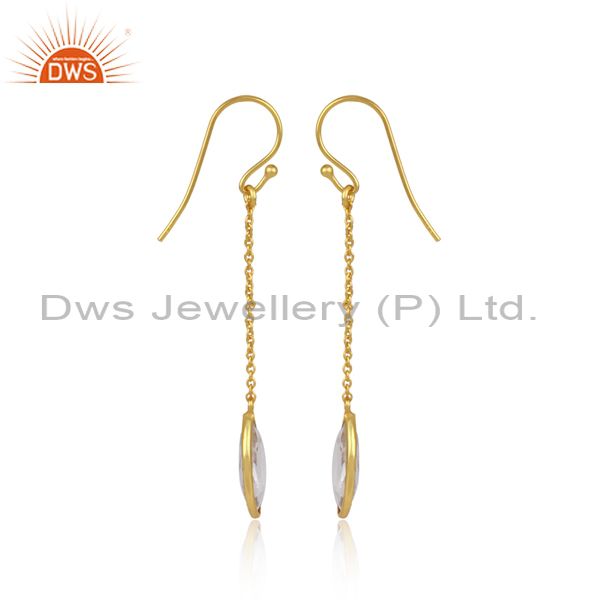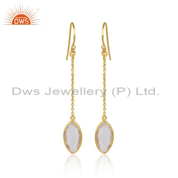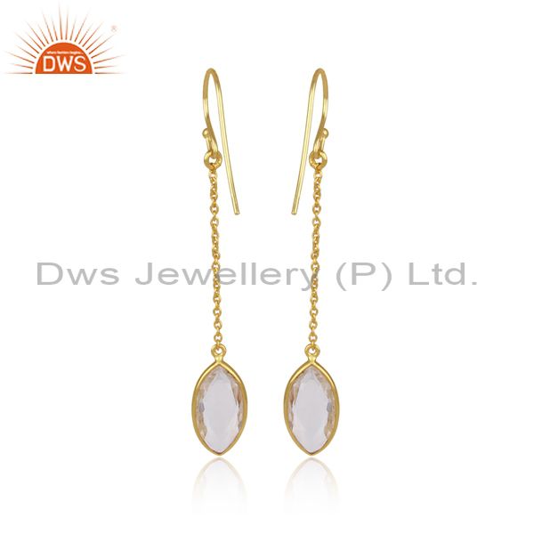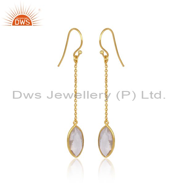 Crystal Quartz Gemstone Designer Gold Plated Silver Chain Earring
