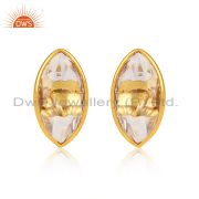 Crystal quartz Gemstone Designer Gold Plated Silver Earrings