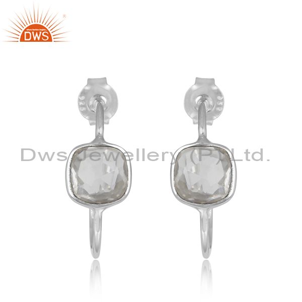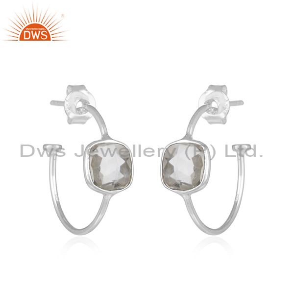 Crystal Quartz Gemstone Sterling 925 Fine Silver Girls Hoop Earrings