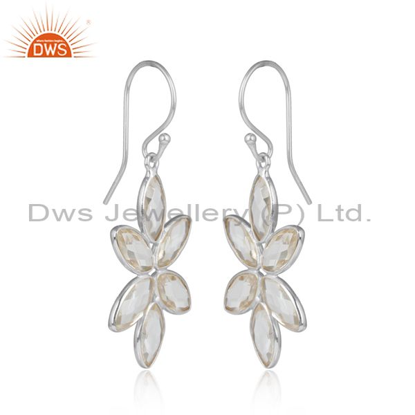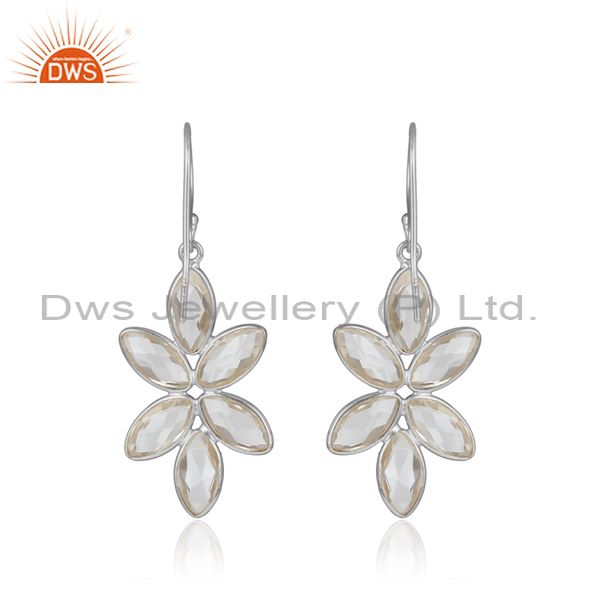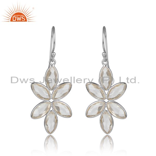 Crystal Quartz Gemstone Sterling Silver Flower Design Earrings