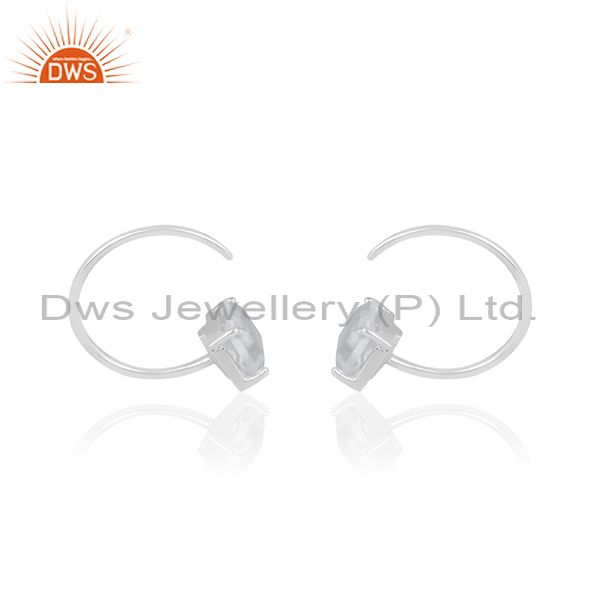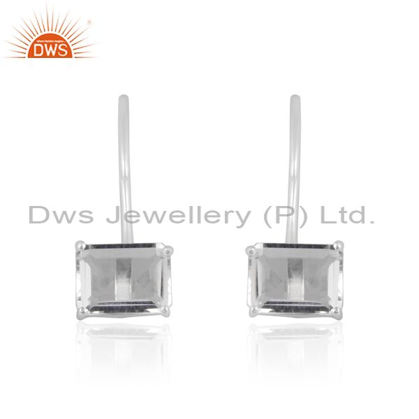 Crystal Quartz Set Fine Silver Rectangular Earwire Earrings