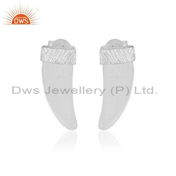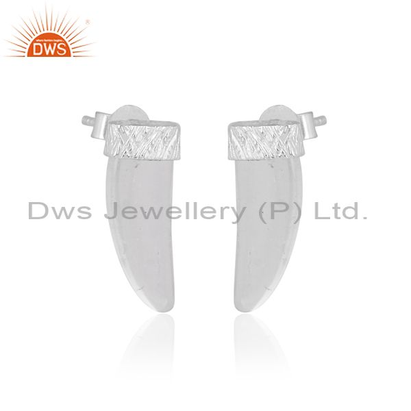 Crystal Quartz Set Fine Sterling Silver Claw Shape Earrings