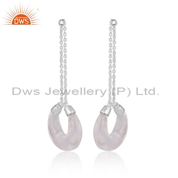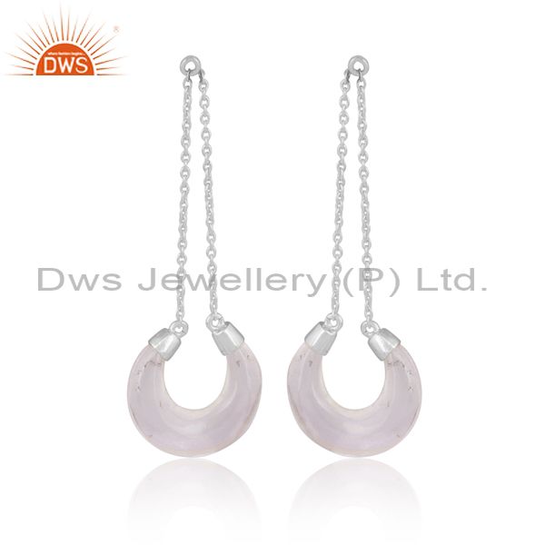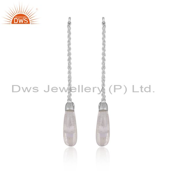 Crystal Quartz Set Fine Sterling Silver Long Drop Earrings
