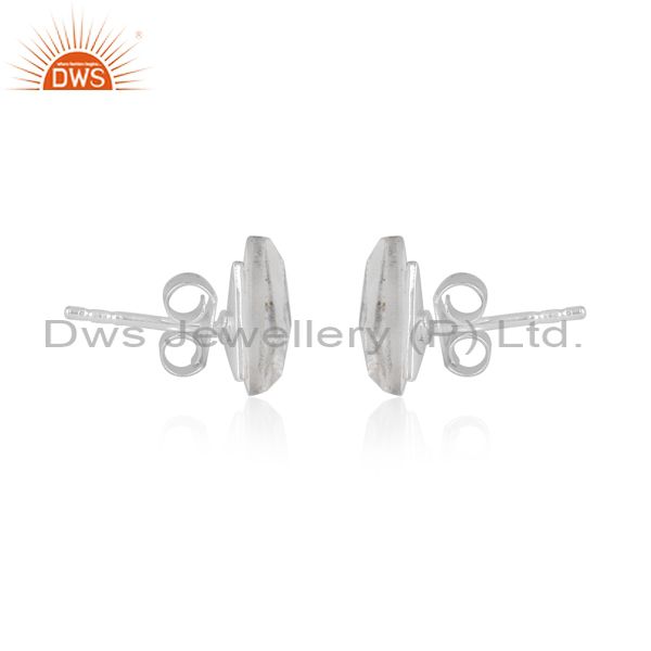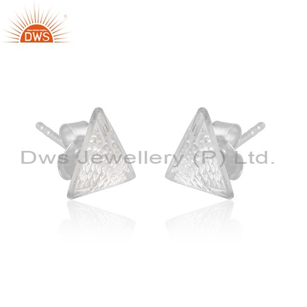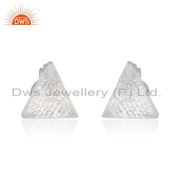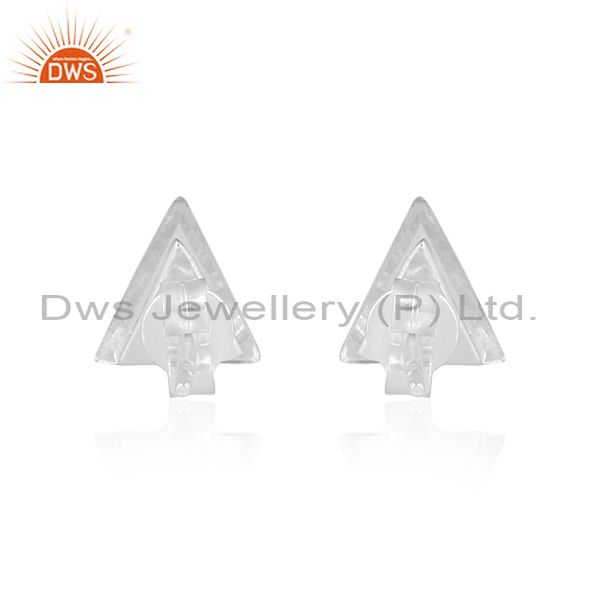 Crystal quartz set fine sterling silver triangular earrings